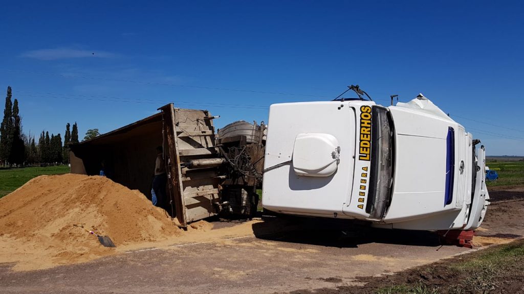 El camión, transportaba una carga de arena, es impactado en su parte frontal izquierda, por un Ford Fiesta Max, conducido por Javier Bernhardt, de 46 años, oriundo de Libertador San Martín.